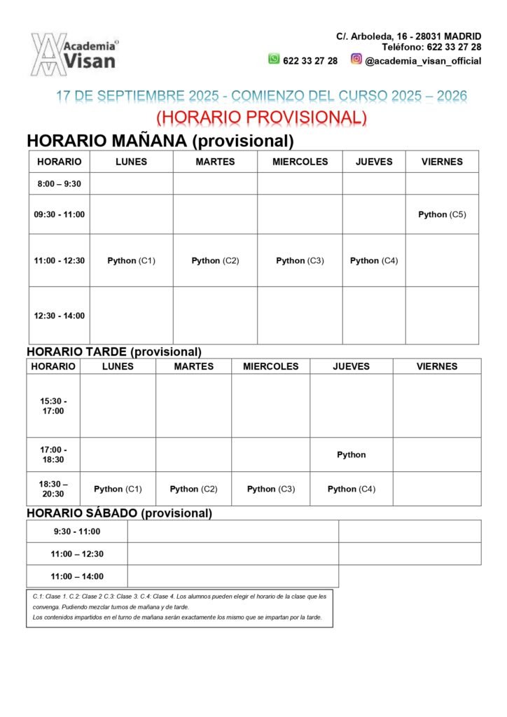 📍 Lugar: Academia Visan (Madrid)